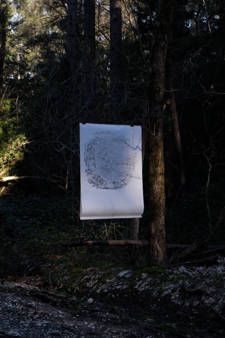 The process is cathartic, spending quality time with the tree allows me to really see and appreciate its life, becoming intimate with their growth rings helps tell their story. It is long, tedious and dirty work but applying the first coat of printing ink and feeling the textures underneeath the roller brings a feeling of reward, happiness and satisfaction.