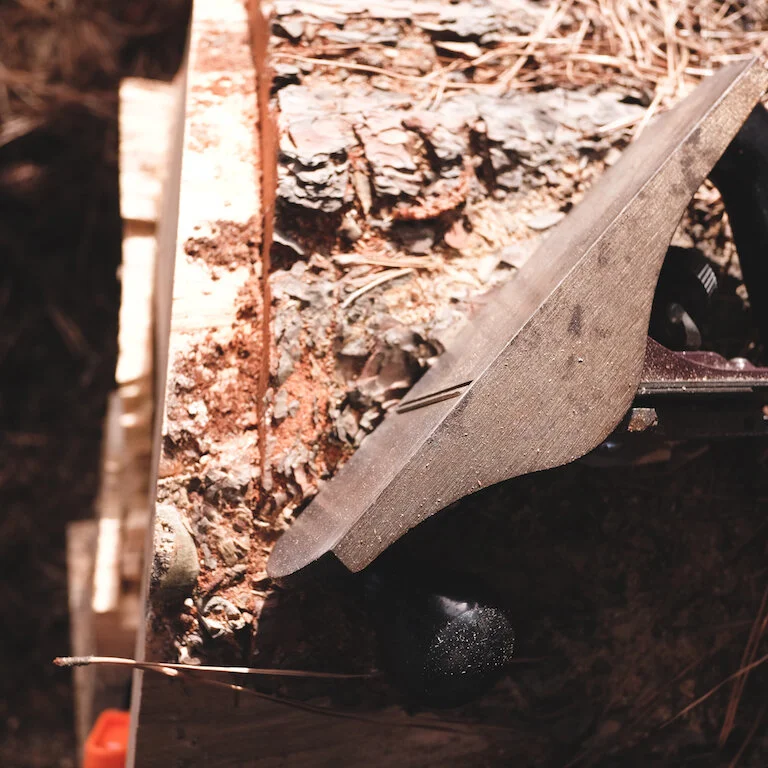 My saw was no match for the stump, shorter in length and with several knots of hard wood pushing through made the next few hours a give and take scenario. I had to learn to be patient and work with the tree, not to force my way through but to be guided along her subtle differences.